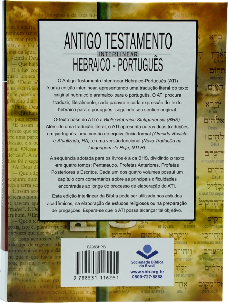 O Antigo Testamento Interlinear Hebraico-Português (ATI) procura traduzir, literalmente, cada palavra e cada expressão do texto hebraico para o português, seguindo seu sentido original. O texto base do ATI é a Biblia Hebraica Stuttgartensia (BHS). Além da tradução literal, de autoria do doutor em língua Hebraica, Edson de Faria Francisco, a publicação apresenta outras duas traduções em português: uma de equivalência formal, a Almeida Revista e Atualizada (RA), e uma de equivalência dinâmica, a Nova Tradução na Linguagem de Hoje (NTLH)