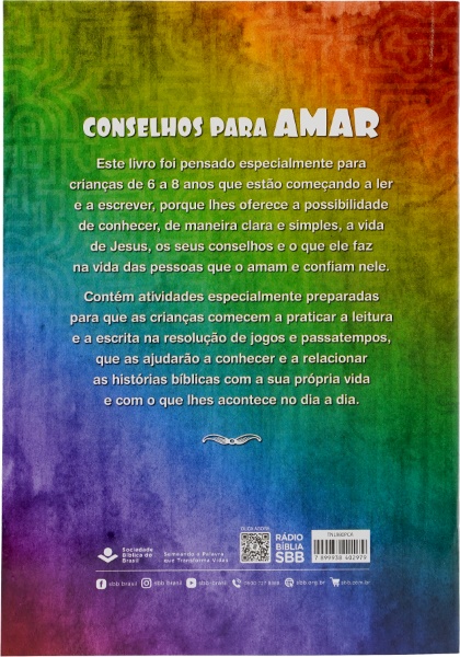 O livreto ‘Conselhos para amar’ foi pensado especialmente para crianças que estão começando a ler e a escrever, porque lhes oferece a possibilidade de conhecer, de maneira clara e simples, a vida de Jesus e os seus ensinamentos, que trazem conselhos que nos ajudam a viver melhor. Contém atividades especialmente preparadas para que as crianças comecem a praticar a leitura e a escrita na resolução de jogos e passatempos, que as ajudarão a conhecer e a relacionar as histórias bíblicas com a sua própria vida e com o que lhes acontece no dia a dia.