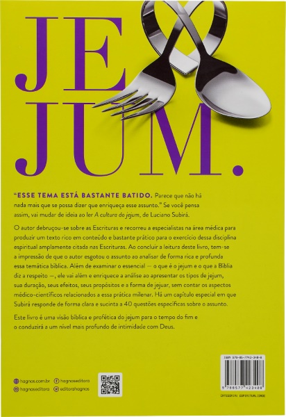 “ESSE TEMA ESTÁ BASTANTE BATIDO. Parece que não há nada mais que se possa dizer que enriqueça esse assunto.” Se você pensa assim, vai mudar de ideia ao ler A cultura do jejum, de Luciano Subirá. O autor debruçou-se sobre as Escrituras e recorreu a especialistas na área médica para produzir um texto rico em conteúdo e bastante prático para o exercício dessa disciplina espiritual amplamente citada nas Escrituras. Ao concluir a leitura deste livro, tem-se a impressão de que o autor esgotou o assunto ao analisar de forma rica e profunda essa temática bíblica. Além de examinar o essencial — o que é o jejum e o que a Bíblia diz a respeito —, ele vai além e enriquece a análise ao apresentar os tipos de jejum, sua duração, seus efeitos, seus propósitos e a forma de jejuar, sem contar os aspectos médico-científicos relacionados a essa prática milenar. Há um capítulo especial em que Subirá responde de forma clara e sucinta a 40 questões específicas sobre o assunto. Este livro é uma visão bíblica