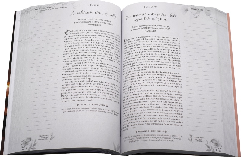 A sabedoria sempre exerceu fascínio sobre a humanidade. Desde os tempos antigos, os sábios eram reconhecidos como aqueles que sabiam interpretar a vida e orientar os passos de seus contemporâneos. No entanto, a Escritura nos mostra que a verdadeira sabedoria não é fruto apenas da observação, mas um dom divino, concedido àqueles que buscam ao Senhor de todo o coração. É nesse espírito que a obra Café com Deus: Um encontro diário com a Sabedoria, escrita pela irmã Judite Alves, se apresenta ao leitor. Mais do que um simples devocional, este livro é um convite a caminhar diariamente com a Palavra, permitindo que ela ilumine o coração e transforme a rotina. Com delicadeza e unção, a autora conduz suas reflexões a partir dos provérbios bíblicos, mostrando sua relevância para os dias atuais e sua centralidade em Cristo, a Sabedoria encarnada. Ao unir a riqueza dos textos sagrados com testemunhos pessoais e aplicações práticas, a autora aproxima os leitores do texto bíblico de maneira afetuosa e cativante. A cada página, sentimos que somos guiados não apenas a compreender a Palavra, mas a experimentá-la em nossa vida diária, em nossas relações e em nossas escolhas.