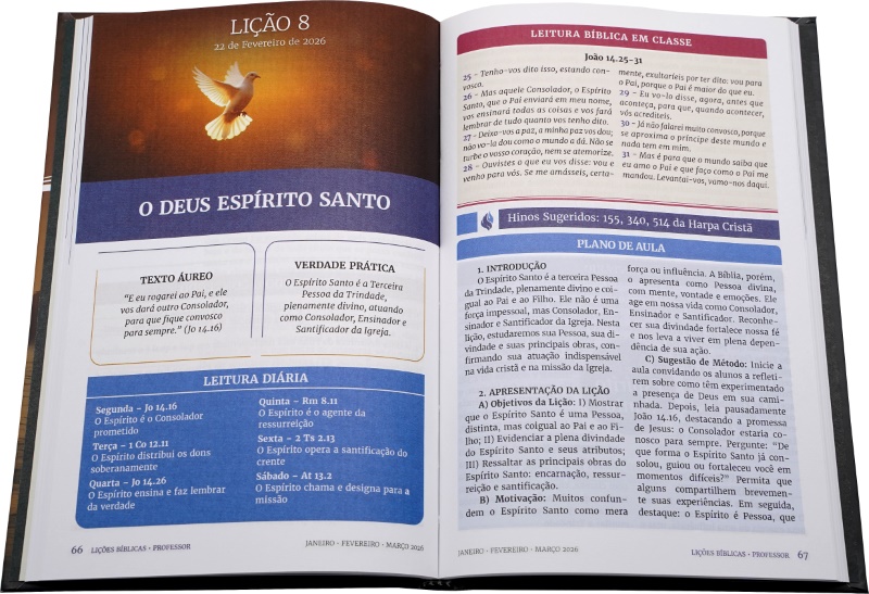Aliando um acabamento superior que só a capa dura oferece à praticidade, agora o professor de escola dominical encontra tudo o que sua aula precisa em um só lugar: nas laterais das páginas das lições e no final da revista há espaços pautados para anotações.