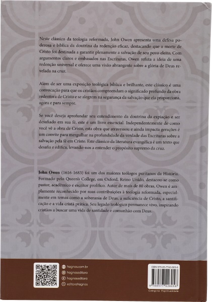 Neste clássico da teologia reformada, John Owen defende a doutrina da redenção eficaz, afirmando que a morte de Cristo garantiu a salvação de seu povo eleito. Com base nas Escrituras, Owen refuta a ideia de uma redenção universal e destaca a glória de Deus revelada na cruz. Este livro é uma exposição teológica profunda e um convite para que os cristãos compreendam o significado da obra redentora de Cristo, encontrando segurança na salvação eterna. Essencial para quem deseja aprofundar a fé e entender a expiação, este clássico desafia e edifica, revelando a verdade das Escrituras sobre a salvação pela fé.